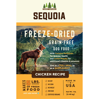 • Sequoia Chicken Freeze-Dried Dog Food (1 lb. Bag Makes 5 lbs. of Food When Hydrated)
