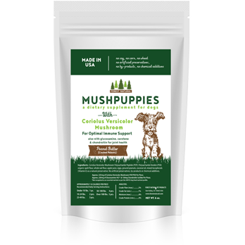 Standard grade immune assistance for your pet. Our Forest Natural Brand has developed a tasty supplement with the immune supporting Coriolus Versicolor mushroom. Includes Glucosamine, Carotene and Chondroitin to support bone and joint function. The Coriolus Versicolor Mushroom is an all-natural botanical found to help support the body’s own immune system. It is widely known that the immune system is the body’s first defense against the smallest of issues to the most complicated. There are hundreds of studies worldwide conducted on Coriolus Versicolor on its immune supporting properties including such notable institutions as Sloan Kettering Center of New York, MD Anderson Center of Texas and one completed by the University of Pennsylvania School of Veterinary Medicine. We have been providing our proprietary blend of Coriolus Versicolor for over ten years for both humans and pets. Our process ensures a highly potent strain of Coriolus Versicolor, harvested at the mycelia stage (not the fruited body), and ensures the highest quality of polysaccharide peptide (PSP) and polysaccharide krestin (PSK).